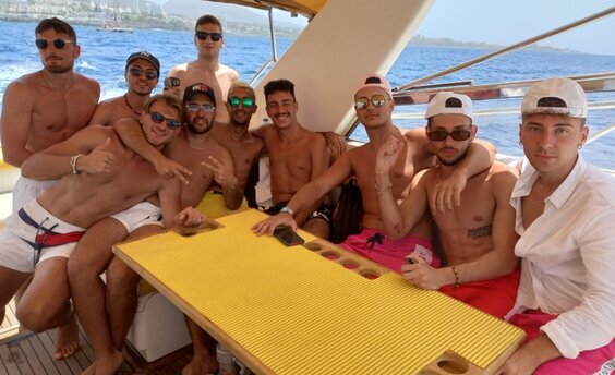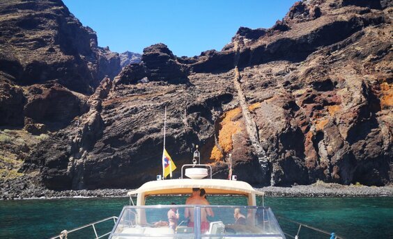 Nuestro capitán(a) o marinero(a) le dará la bienvenida a bordo de nuestro yate a motor Fairline de 42 pies "Skyline Cruiser" con capacidad para alojar cómodamente a 12 personas. Permítanos darle la bienvenida a bordo de nuestro yate en Puerto Colón, donde podrá estar comodamente en el área de asientos a la sombra o en las tumbonas en la parte delantera. Después de salir del puerto su capitán(a) o marinero(a) le contará un poco sobre el viaje y lo que puede esperar ver. Mientras se sienta y toma el sol, navegamos mar adentro para observar de cerca la fauna marina de Tenerife en su hábitat natural, más tarde echamos el ancla en una bahía apartada donde podrá nadar y disfrutar de algunos aperitivos y bebidas de cortesía.